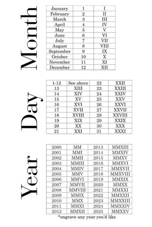 January 1 2021 In Roman Numerals : Free Printable Roman Numerals 1 To 2000 Chart : Roman numerals used to make the conversion:. There were an estimated babies born throughout the world in 2021. I · i · mmxxi above represents how the date january 1, 2021 is converted to roman numerals, this can be used to represent this date for a purpose such as a birthday / anniversary card or gift or tattoo. 2021 = 2,000 + 20 + 1; The highest numerals must always precede the lowest numerals for each date element individually, and in order of precedence to give you the correct written date combination of month, day and year, like this: You can theroretically add more ms to the beginning which adds 1,000 for each m, but an easier way is to add roman numerals with overlines.